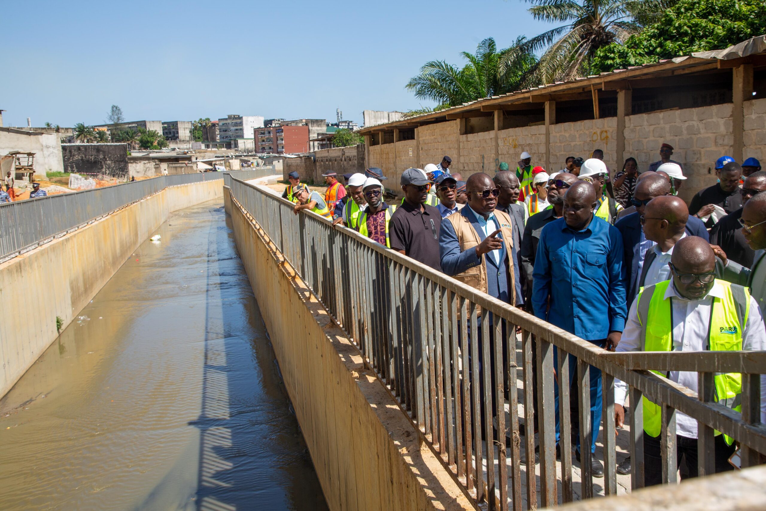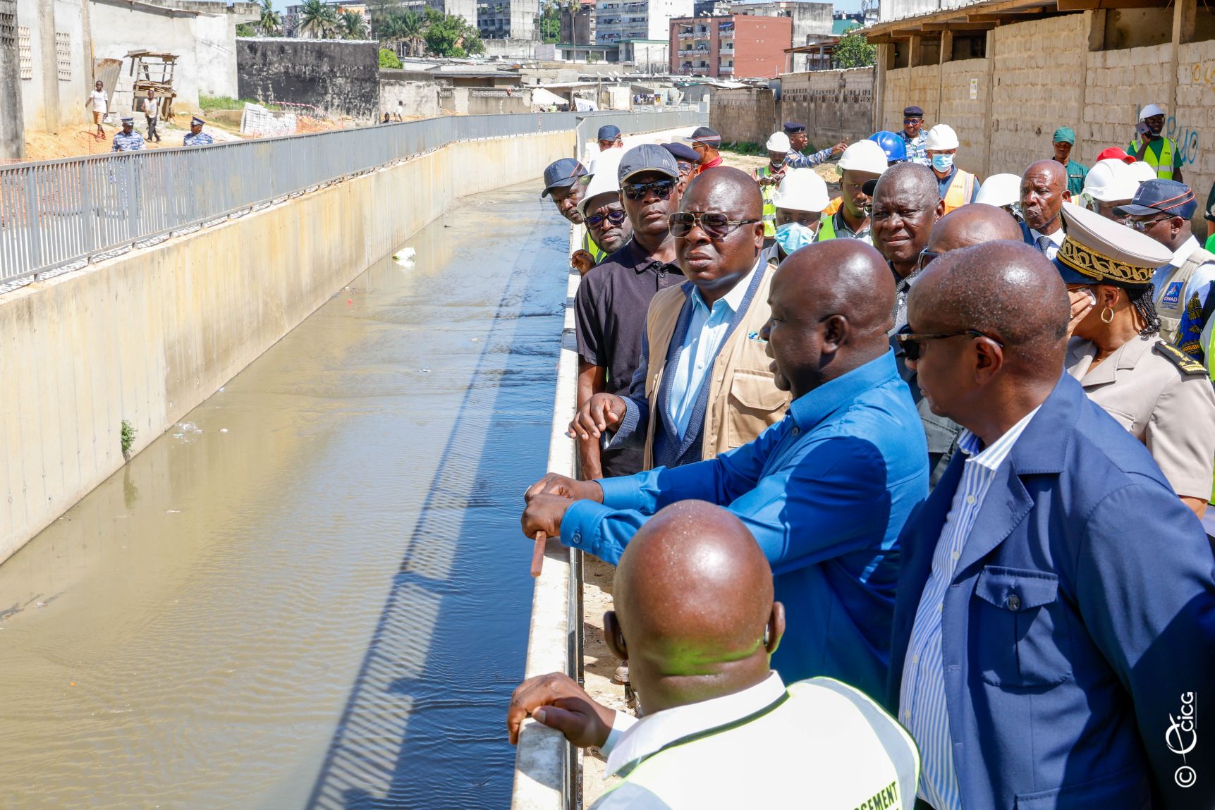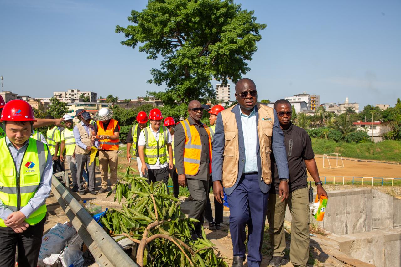 La visite s’est poursuivie à Cocody, sur le barrage écréteur de Bonoumin où des travaux de terrassement de la cuvette ont débuté afin d’augmenter le volume de stockage et de rétention des eaux de pluie à 400 000 M3, ce qui va contribuer à réduire considérablement les risques d’inondation dans la zone.