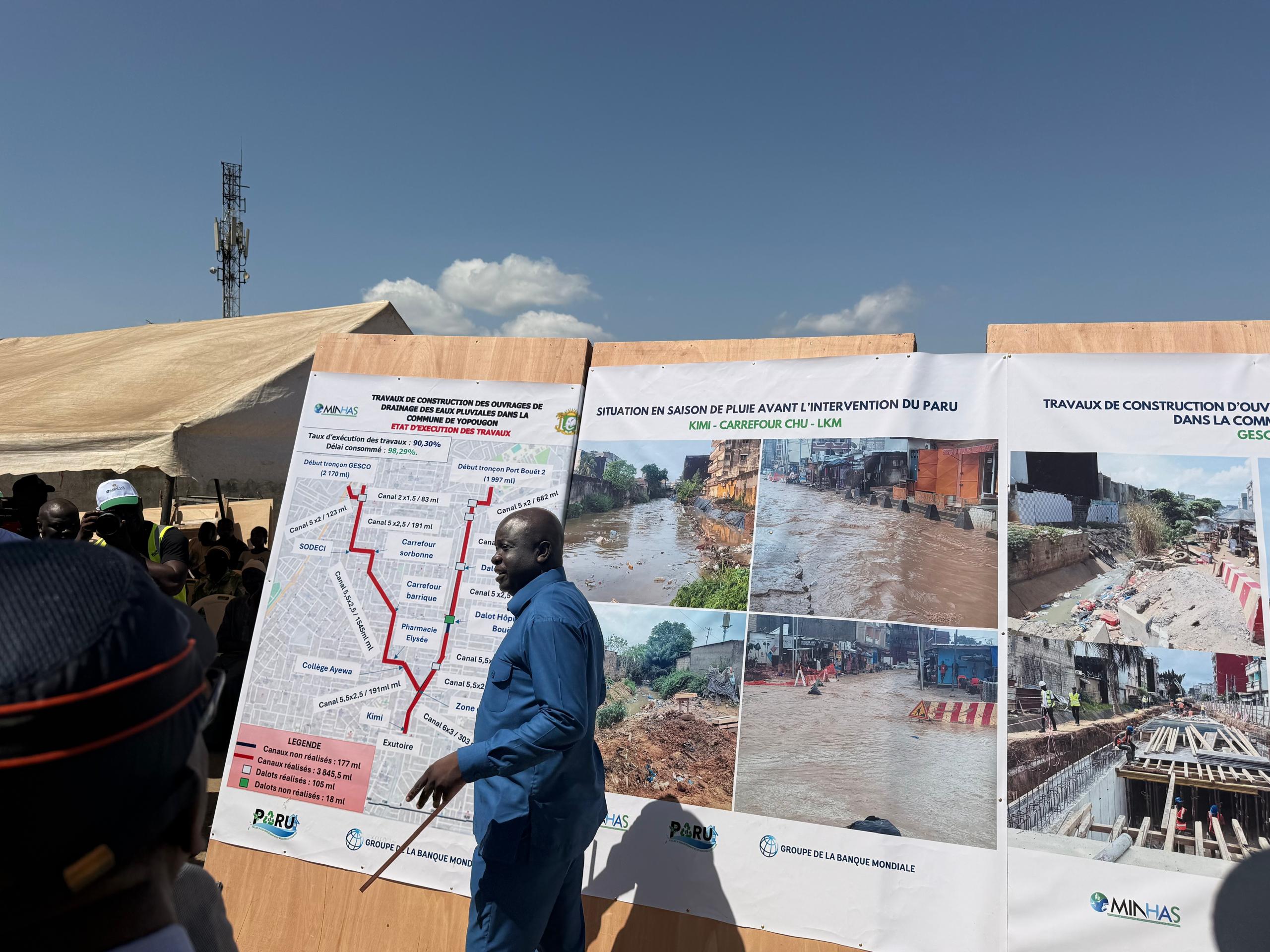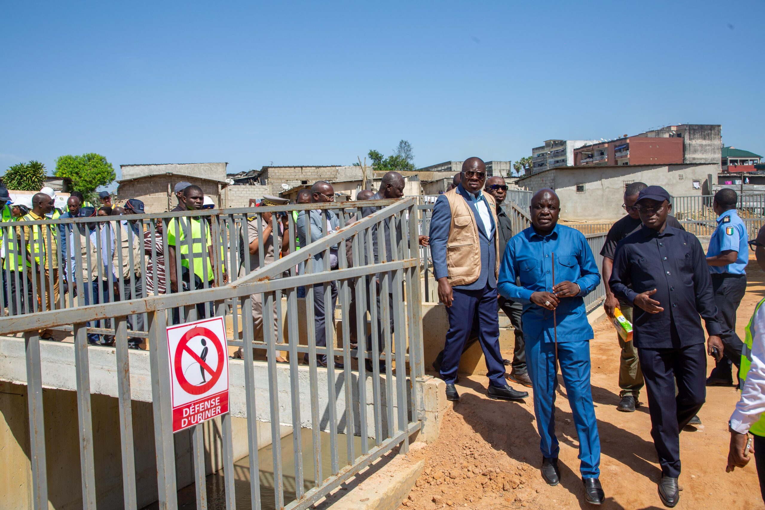 Le jeudi 26 mars 2026, le Ministre de l’Hydraulique, de l’Assainissement et de la Salubrité, le Dr Amédé Koffi KOUAKOU, a effectué une visite de terrain sur les chantiers du Projet d’Assainissement et de Résilience Urbaine (PARU). Cette tournée s’inscrit dans la préparation de la saison des pluies et vise à s’enquérir de l’état d’avancement des ouvrages de drainage des eaux de pluie construits par le PARU pour réduire les risques d’inondation.